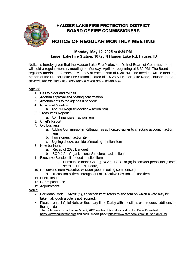 Hauser Lake Fire Protection District & Volunteer Fire Department | Hauser, Idaho | Established 1952