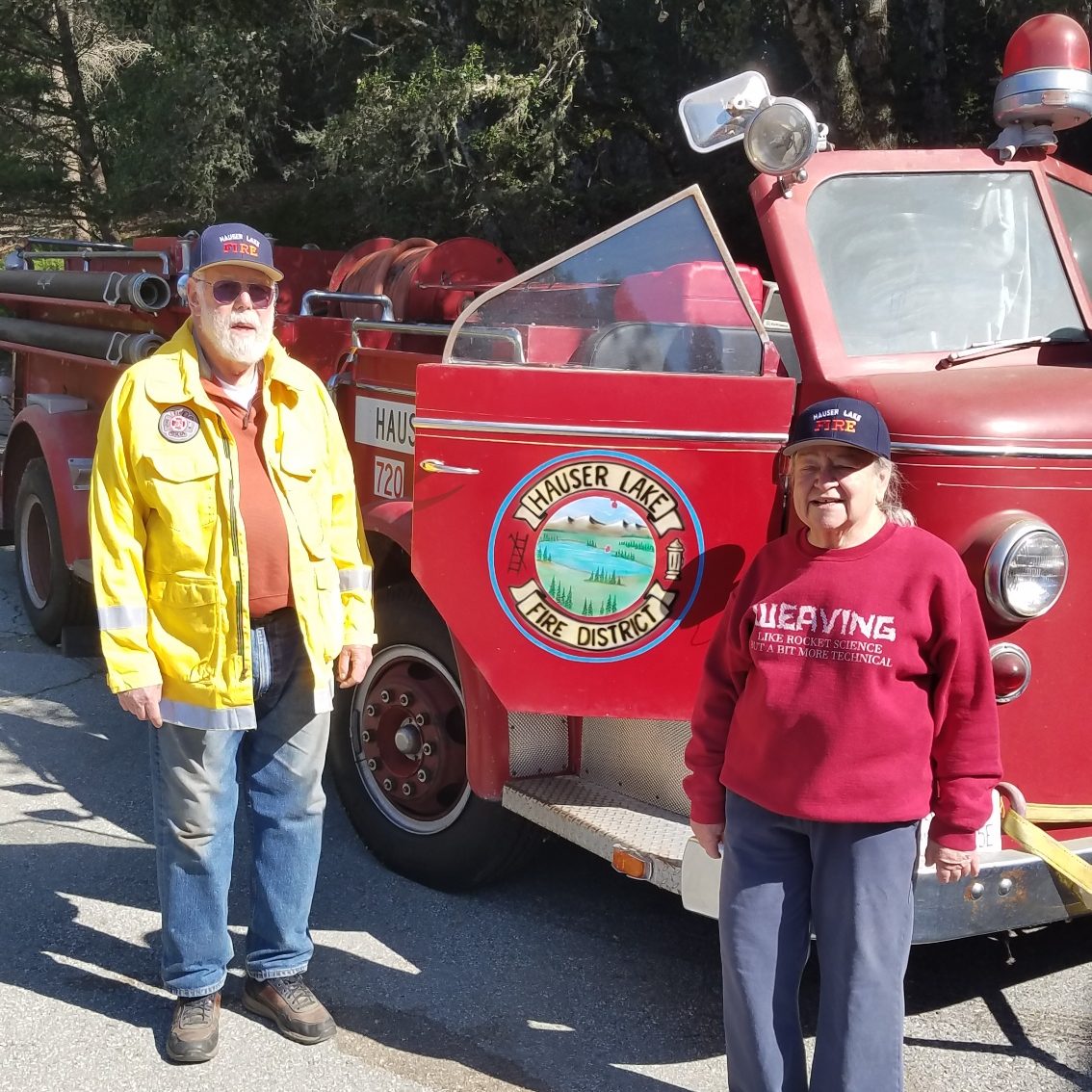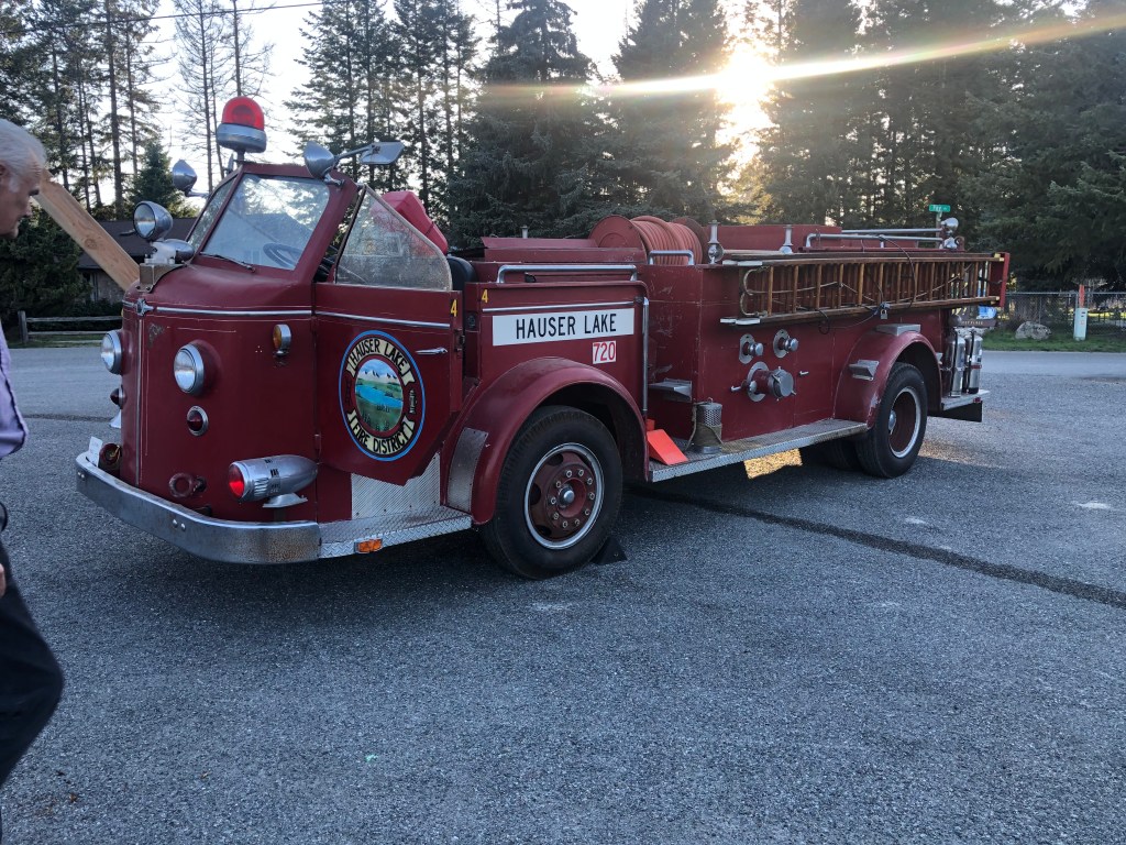 Several volunteer firefighters and their families helped transport the engine from California to Hauser Lake last week. Watch for more news in the coming weeks. For now, it’s home again in Hauser and safely tucked away inside a back bay of the station. ~JR