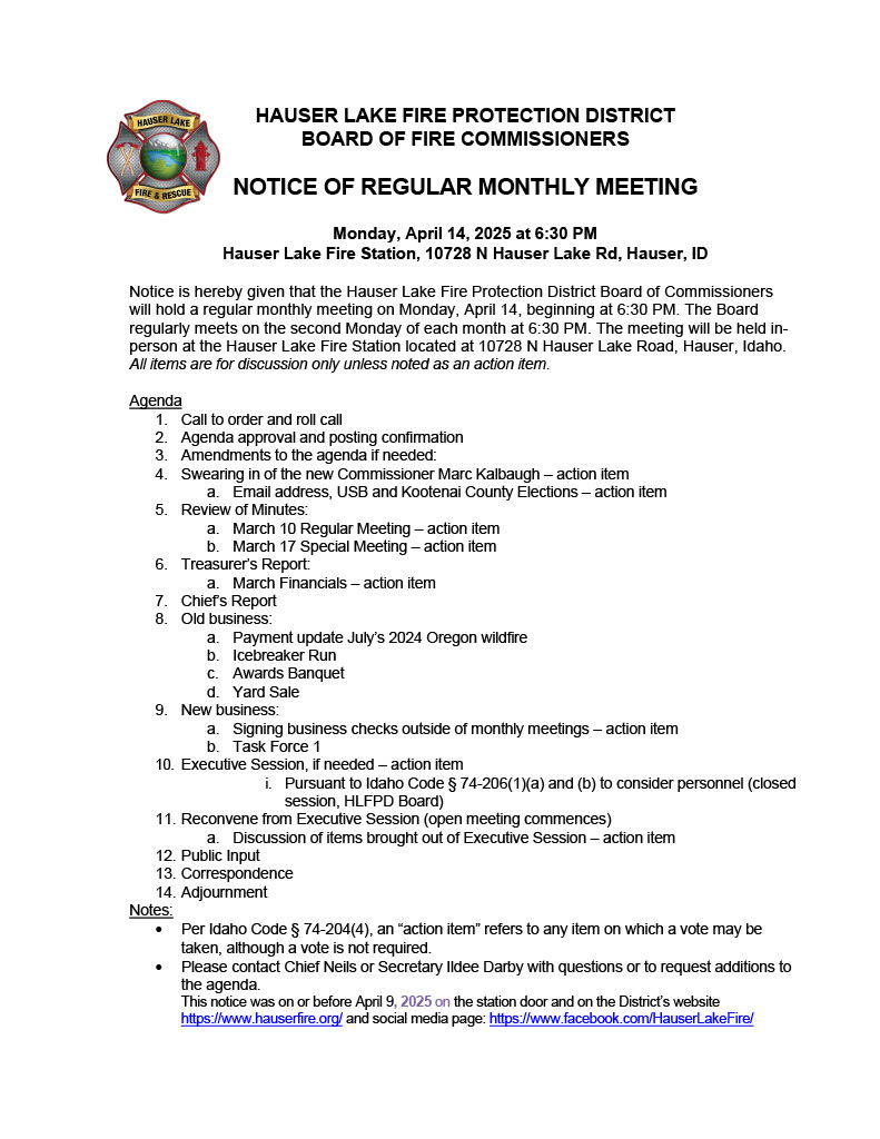 Hauser Lake Fire Protection District & Volunteer Fire Department | Hauser, Idaho | Established 1952