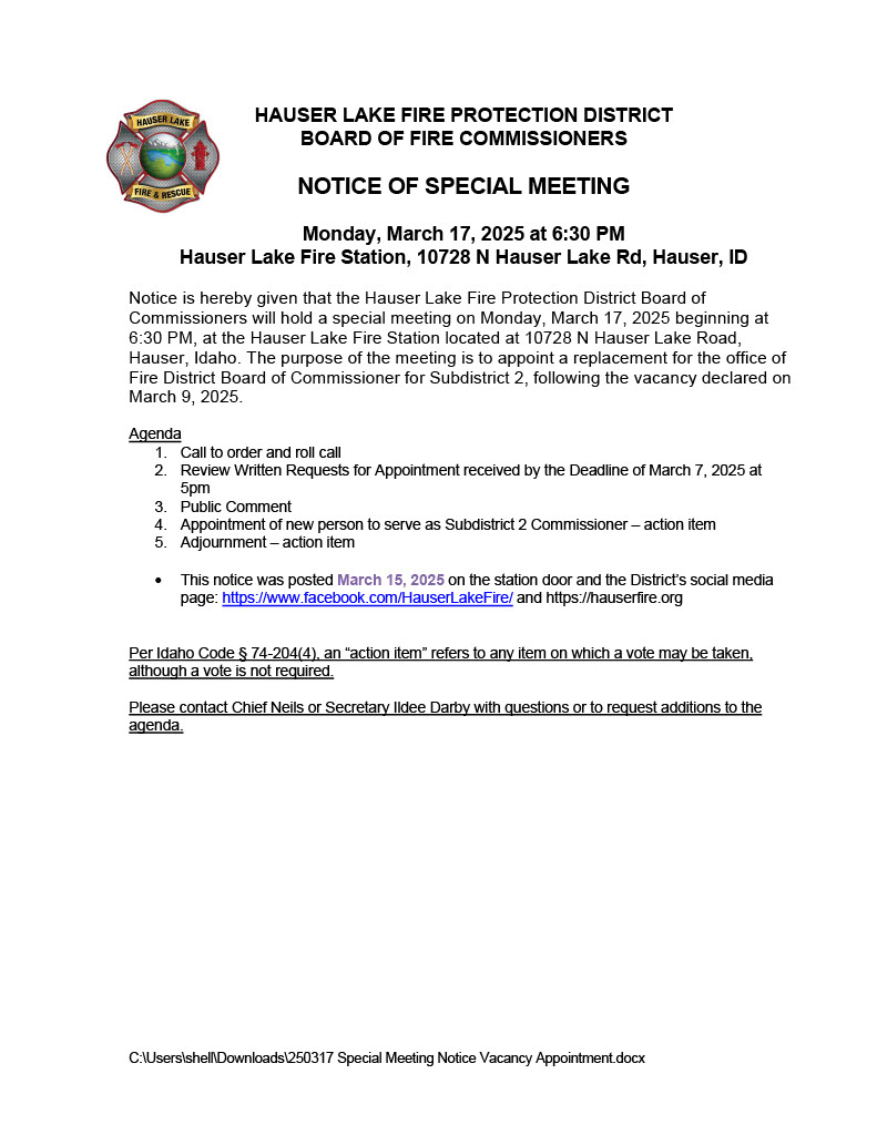 Hauser Lake Fire Protection District & Volunteer Fire Department | Hauser, Idaho | Established 1952